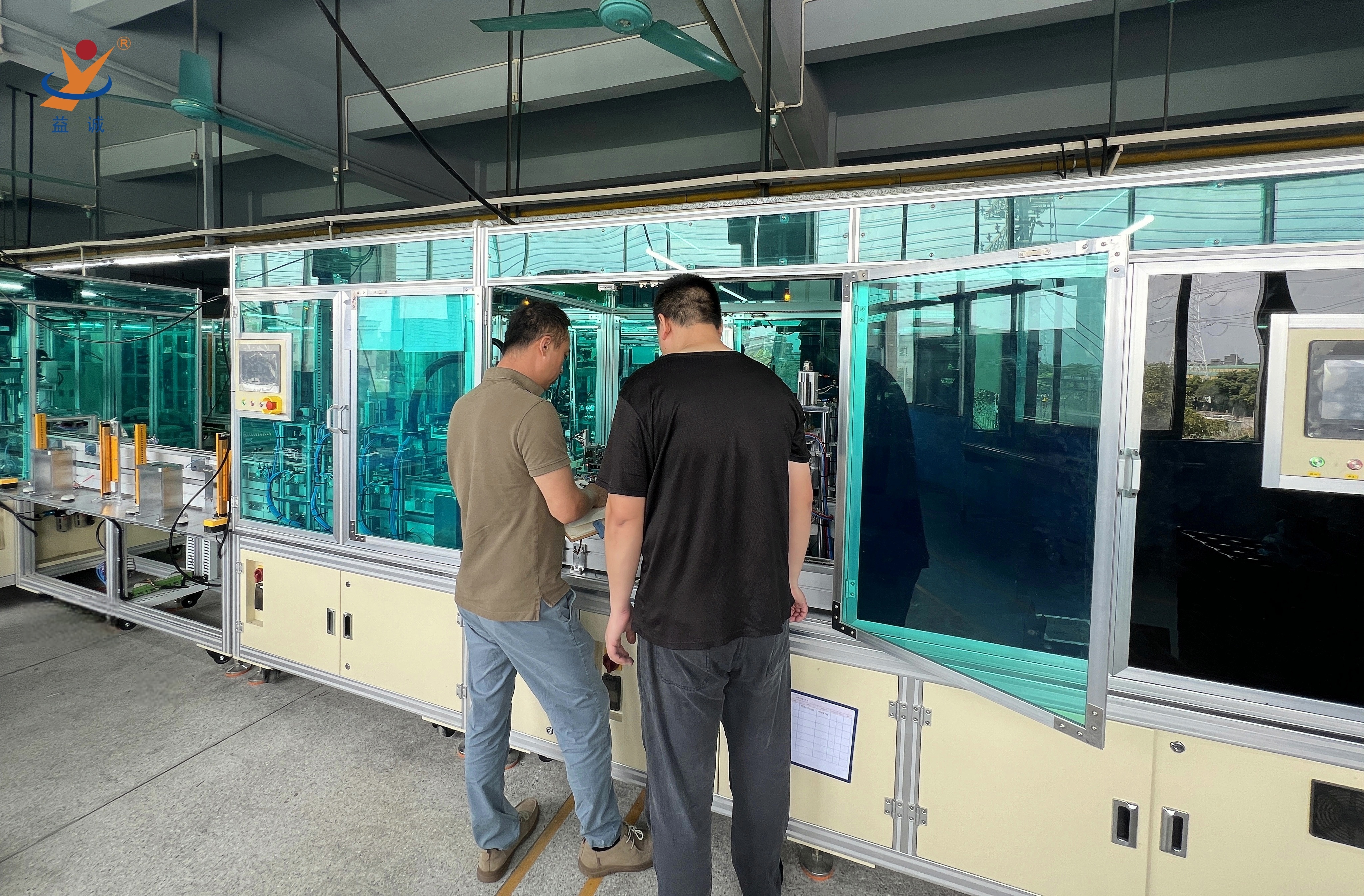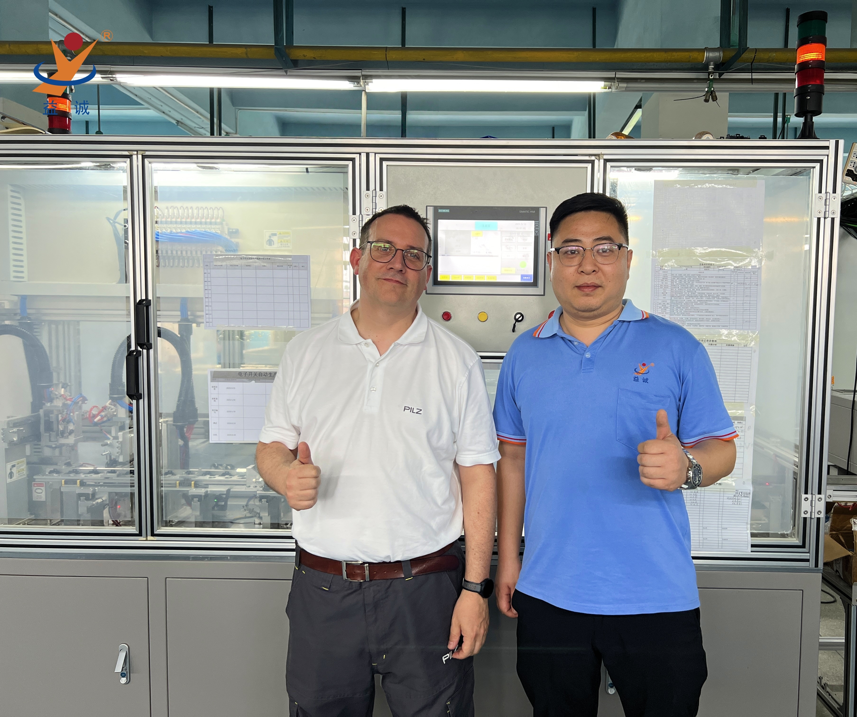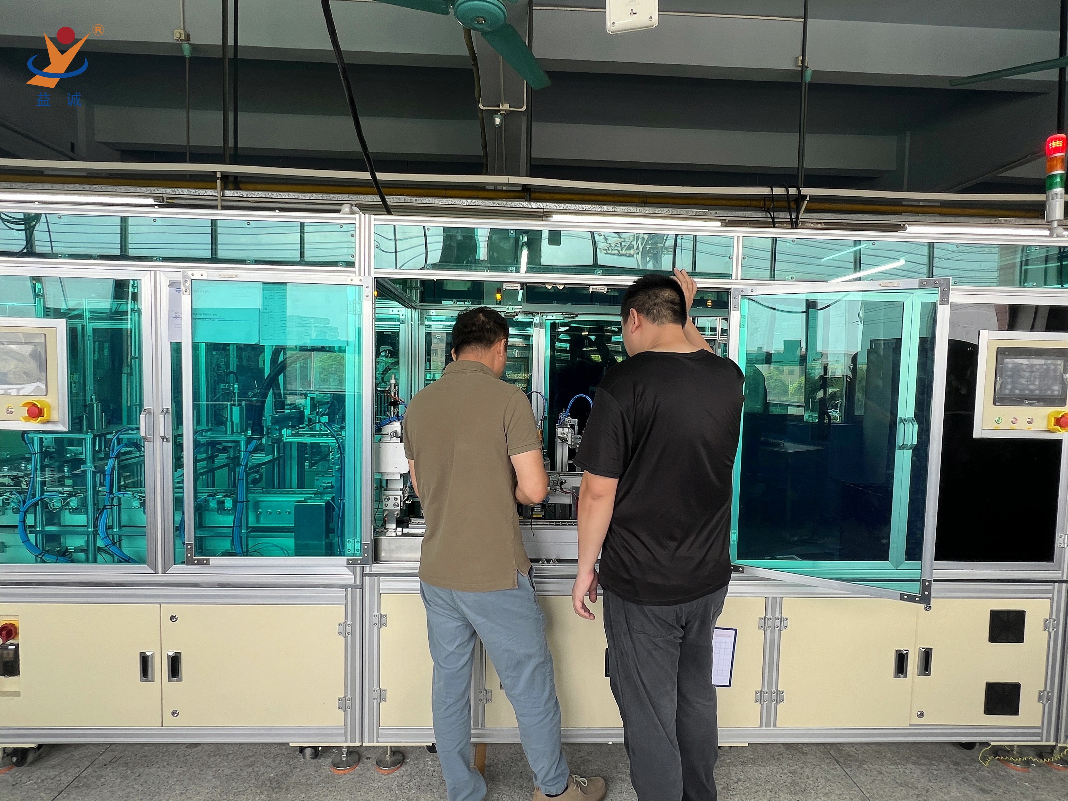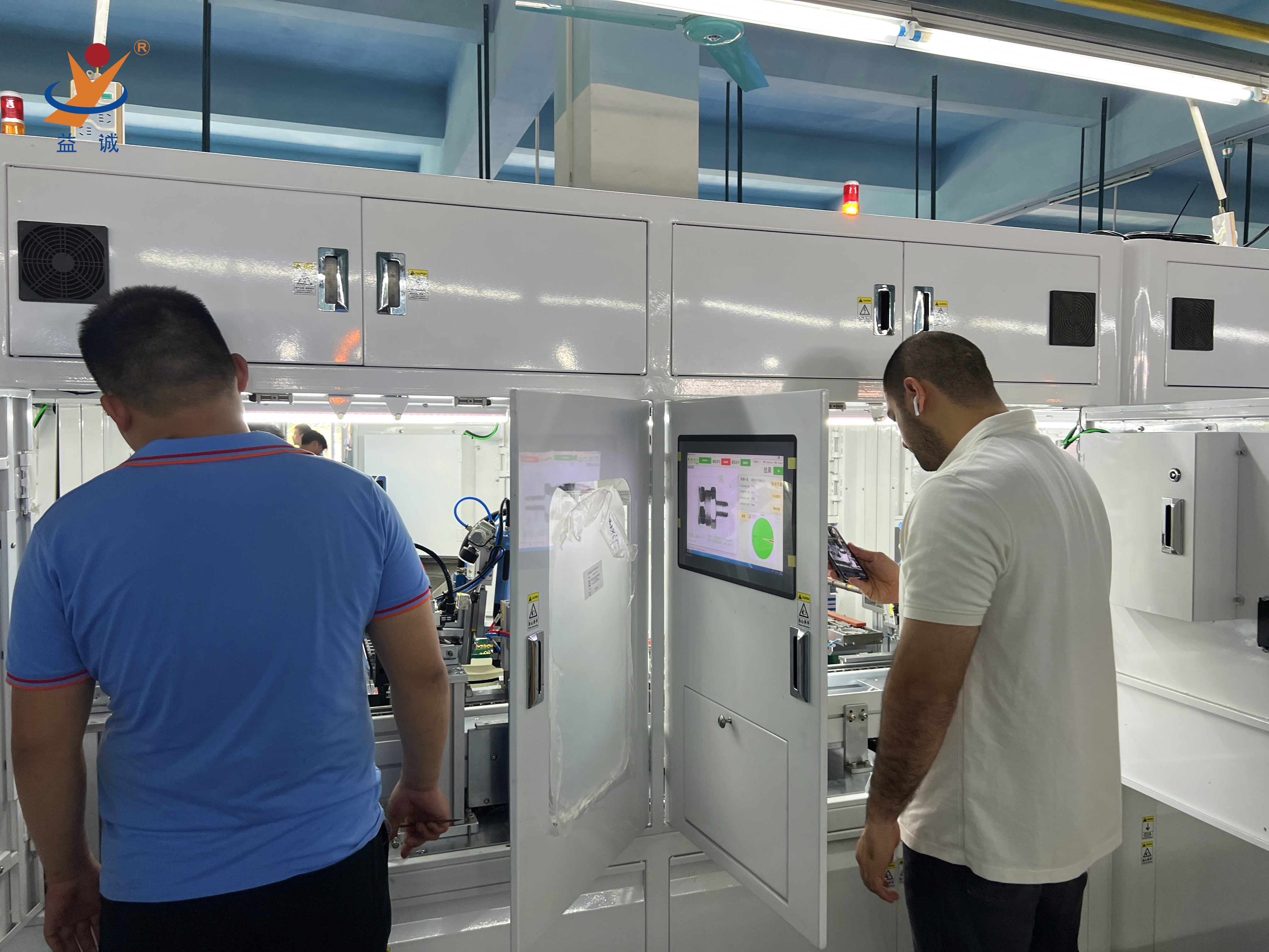 來(lái)自法國(guó)的客戶團(tuán)隊(duì)正在現(xiàn)場(chǎng)對(duì)高端智能低壓電器自動(dòng)化生產(chǎn)線進(jìn)行細(xì)致地驗(yàn)收,該種類(lèi)設(shè)備是益誠(chéng)自動(dòng)化的實(shí)力產(chǎn)品之一,是集合高智能、高精度、高產(chǎn)能與實(shí)時(shí)數(shù)據(jù)化檢測(cè)系統(tǒng)等高端技術(shù)于一體的高科技自動(dòng)化生產(chǎn)線。